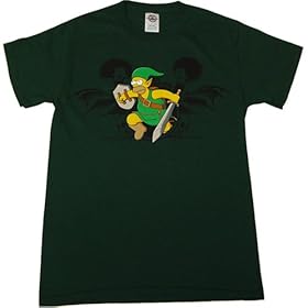 This unique Simpsons t-shirt features Homer as "Link" in a Legend of Zelda spoof. It's stabbing time! Standard mens size tee. Shoulder-to-shoulder taped, sleeve and bottom hem are double-needled. 100% cotton. Officially licensed.