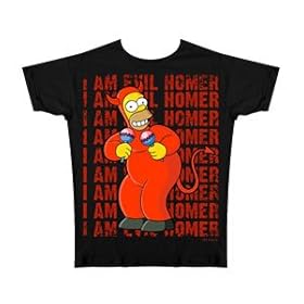 Black slim fit tee featuring Homer from the hit tv show The Simpsons! Homer is dressed as the devil, carrying maracas, on the front of this shirt. In the background the words I AM EVIL HOMER repeat in distressed red text. Cotton/polyester blend.